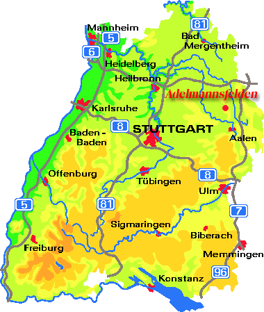 Aus allen Richtungen kommend gelangt man zur Hauptstraße (Ortsmitte). Das große Wohn- und Geschäftshaus Hauptstrasse 63 - 65 ist direkt unterhalb des Rathauses hinter dem Dorfbrunnen im Zentrum von Adelmannsfelden. Die Arztpraxis befindet sich behindertengerecht ebenerdig im unteren Teil des Gebäudes Hauptstrasse 63.